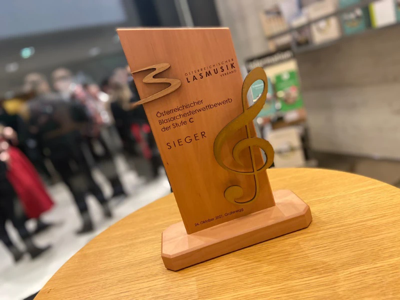 Die Musikerinnen und Musiker unter der Leitung von Kapellmeister MMag. Stephan Kaufmann wurden von den Emotionen überrannt und konnten es kaum glauben, als der Bundespräsident Alexander Van der Bellen höchstpersönlich, das Ergebnis verkündete und dem Kapellmeister und den beiden Obmännern den Pokal überreichte. Die Freude war einfach unbeschreiblich. Die zeitintensive Probenarbeit hat sich mehr als ausgezahlt.
