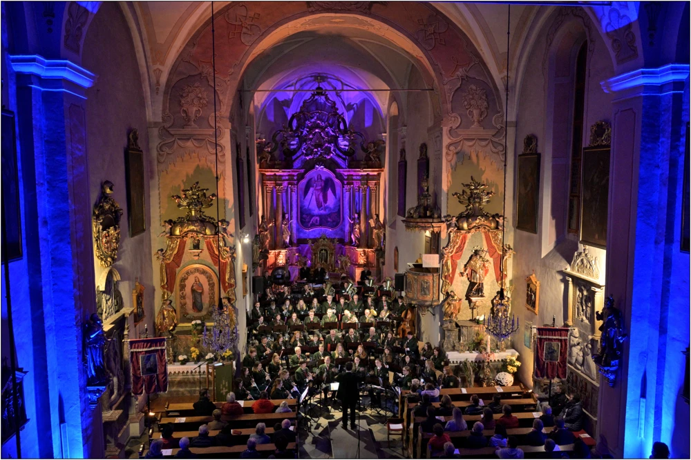 Nach 2 Jahren Zwangspause konnte in diesem Jahr das traditionelle Kirchenkonzert der Trachtenmusikkapelle Trautmannsdorf endlich wieder, in der in Farben gehüllten Pfarrkirche, stattfinden.