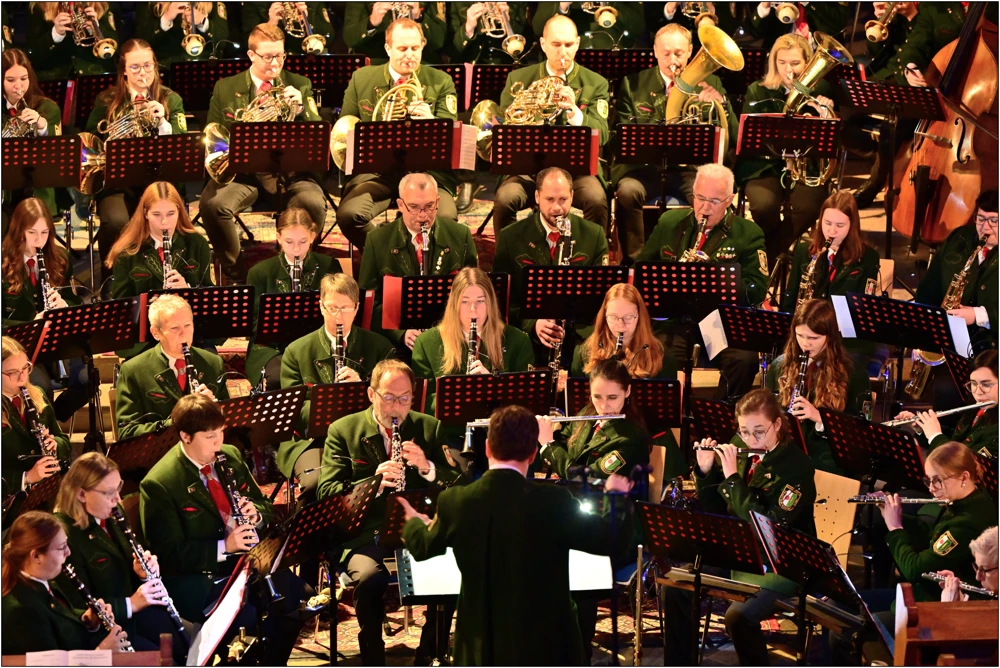 Unter der Leitung von Kapellmeister Stephan Kaufmann präsentierten die rund 65 Musikerinnen und Musiker ein facettenreiches Programm, das von symphonischer Blasmusik, über Filmmusik bis hin zur einfühlsamen Pop Ballade reichte.